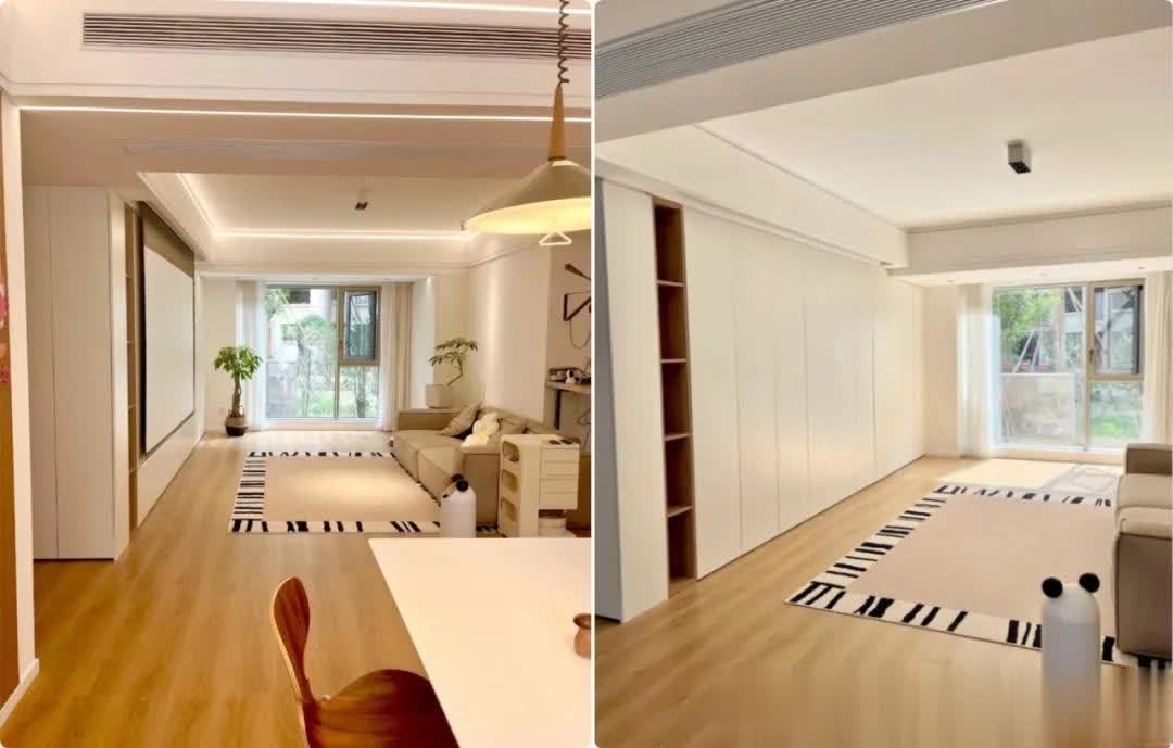 目前入住以后,几乎整栋楼找不到第二家用挂机的,不是柜机就是风管机,而且做满了背景和吊顶,像极了建材仓库,完全是掏钱把建材搬运到家里,失去空间更失去了入住品质。