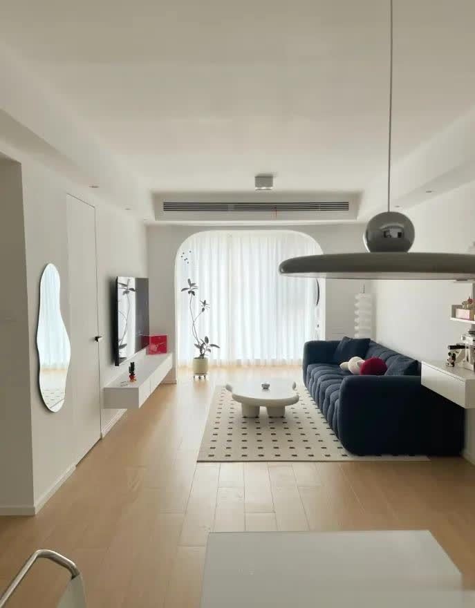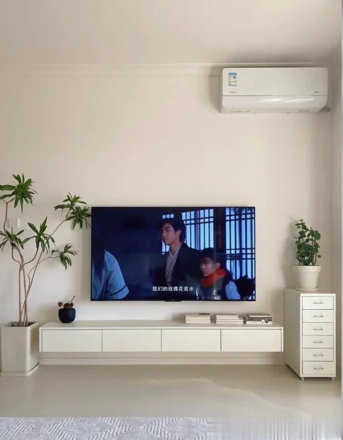 本身房子就小,虽然就两人入住,但是空间小压根都不满足吊顶,会压抑空间,同时因为空间小,没有用柜机和风管机,普通挂机本身就能满足功能,而且省钱还不会视觉累赘。