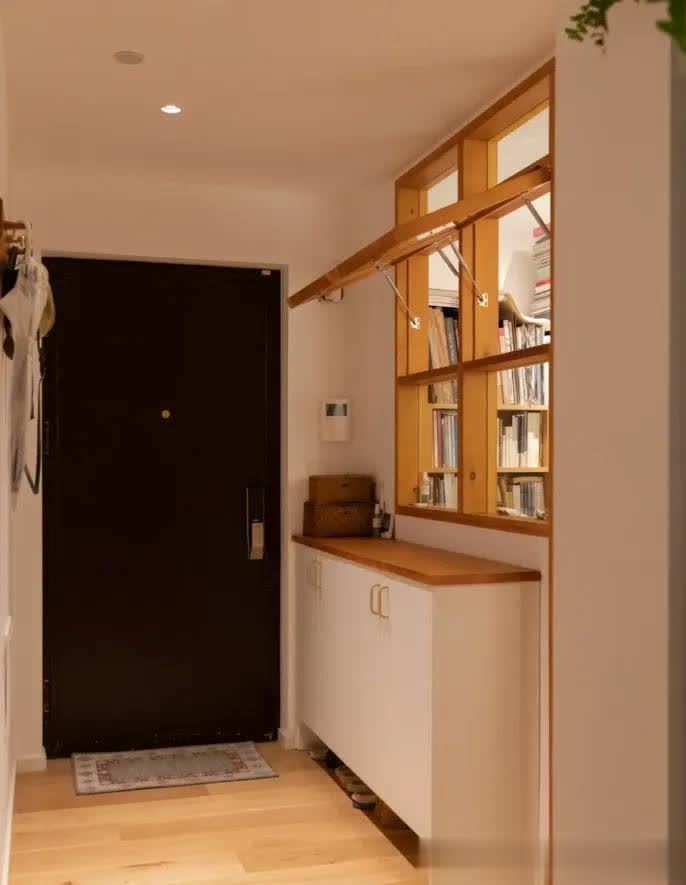 虽然是独立门厅,但是进门空间很小,关键是完全没有采光,如果只靠灯光来解决,每天回家都比较压抑。所以装修之初直接砸掉了次卧墙体,新开一扇窗户,实现了门厅的自然采光,而且有了放大空间的功效。《绝不后悔进门开一扇窗,空间又大又敞亮》