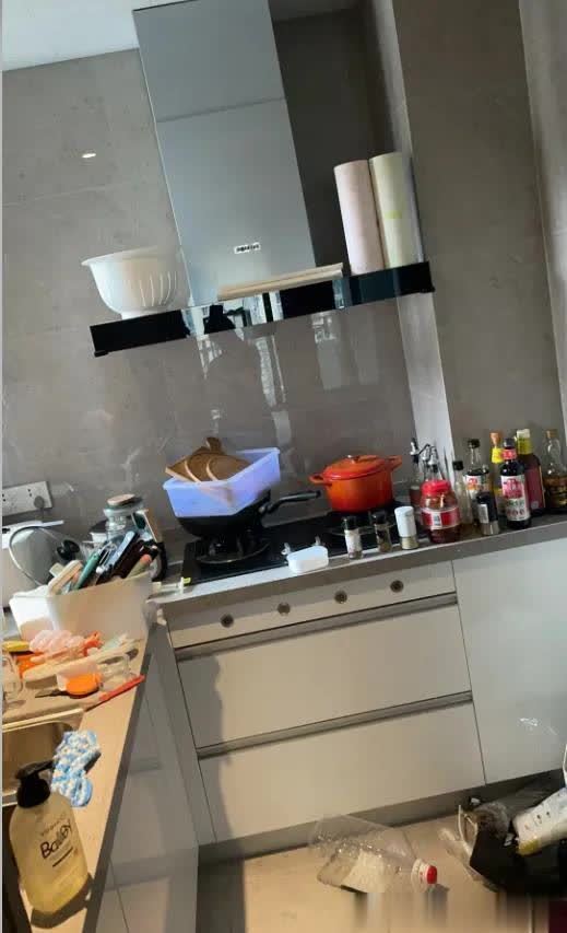 装修之前如果说资金不足可以不做吊柜,后期哪怕补做都行,但是千万不要听信别人说做吊柜压抑了,上图就是不做吊柜的后果,除非你就不做饭,否则不到一年东西太多,就乱成仓库了。《跟风厨房不要吊柜,入住基本都后悔了》